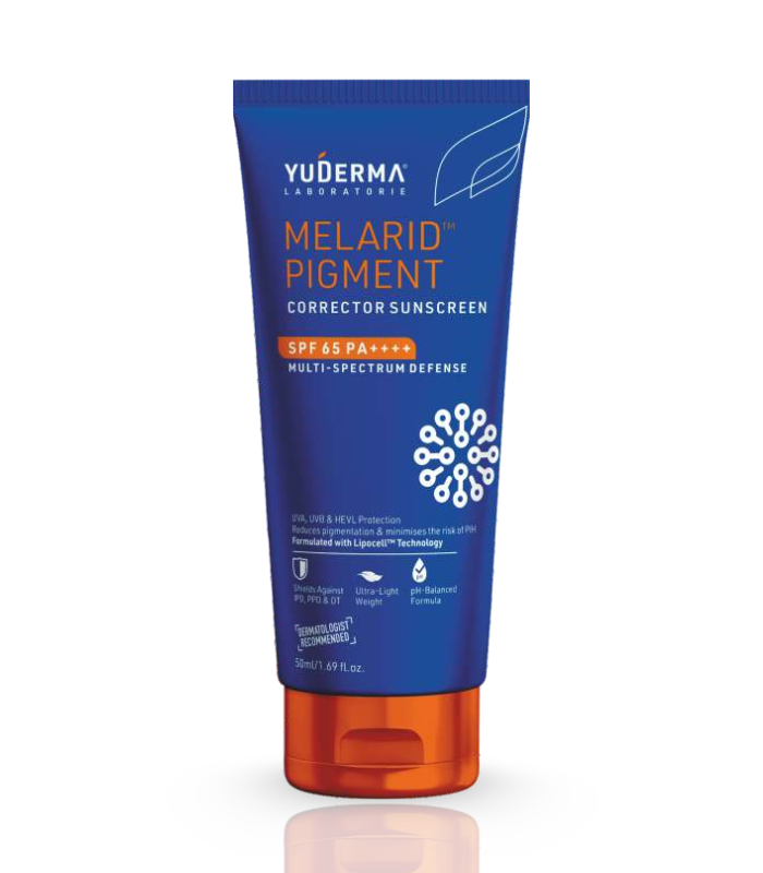 MELARID PIGMENT CORRECTOR SUNSCREEN combines advanced UV protection with targeted pigmentation care. Its high SPF 65 PA++++ formula with Lipocell™ Technology helps visibly reduce dark spots, prevent pigmentation recurrence, and promote a more even skin tone.